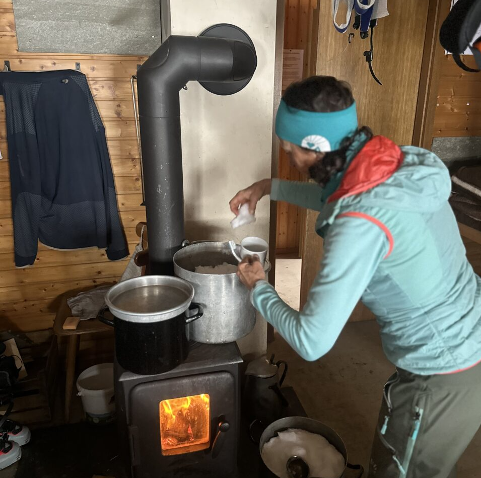 Der Abend verläuft genau so, wie man es sich wünscht: Jeder hat etwas mitgebracht, es wird gemeinsam gekocht, gelacht und erzählt. Zwischen Pasta, Salat und einem Glas Rotwein vergeht der erste Tag in bester Hüttenatmosphäre.