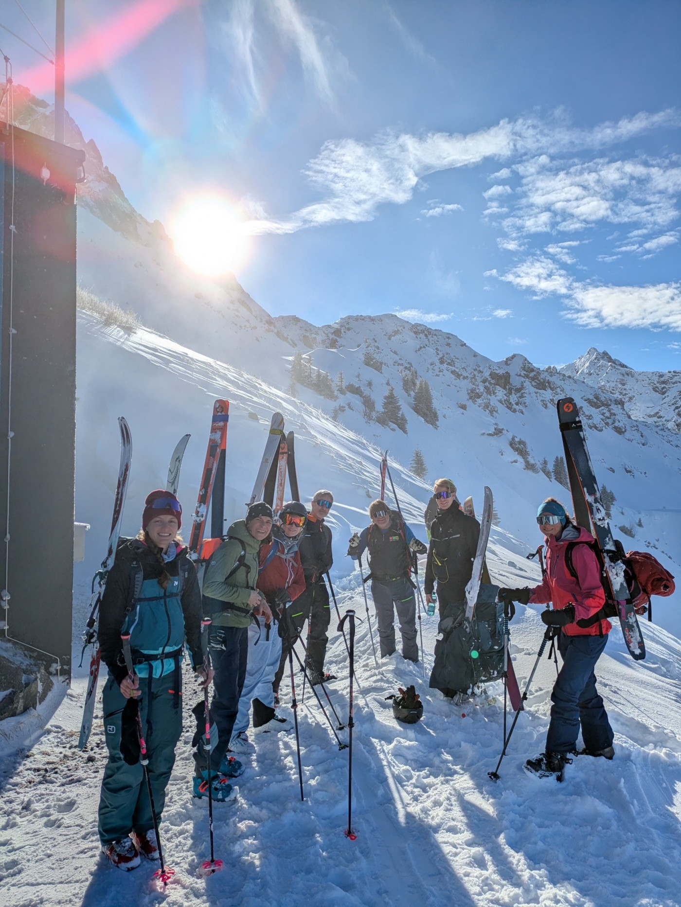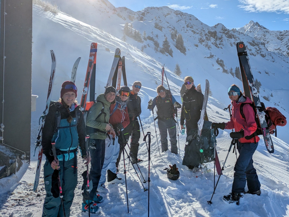 Treffpunkt für das geplante Tourenwochenende war 8:50 Uhr an der Talstation der Fellhornbahn. Mit dabei waren neben Stefan, unserem Tourguide noch Hanna, Lena, Felicitas, Silvia, Christian (der Schreiberling) und Joel Fabrice.