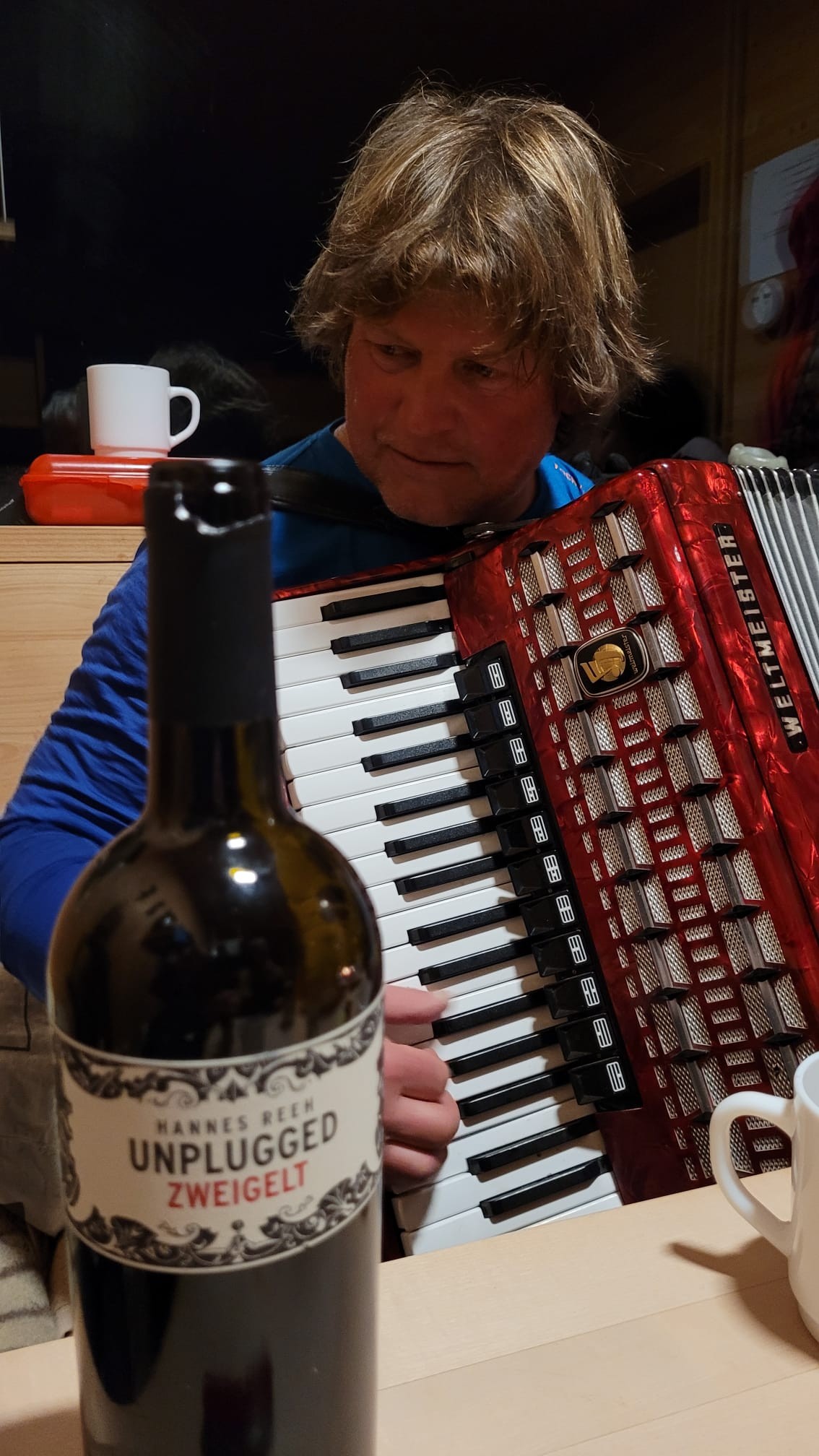 Ein weiteres Highlight zu später Stunde war die Musikeinlage von Stefan und Felicitas auf Akkordeon und Gitarre, die in der Hütte auf Wiederbelebung warteten. Die Gitarre setzte sich allen Stimmversuchen zur Wehr und landete schnell in der Ecke. Auch wenn die eine oder andere Taste am Akkordeon wohl vertauscht war, konnten die beiden mit Ihren Einlagen die Stimmung ordentlich steigern.